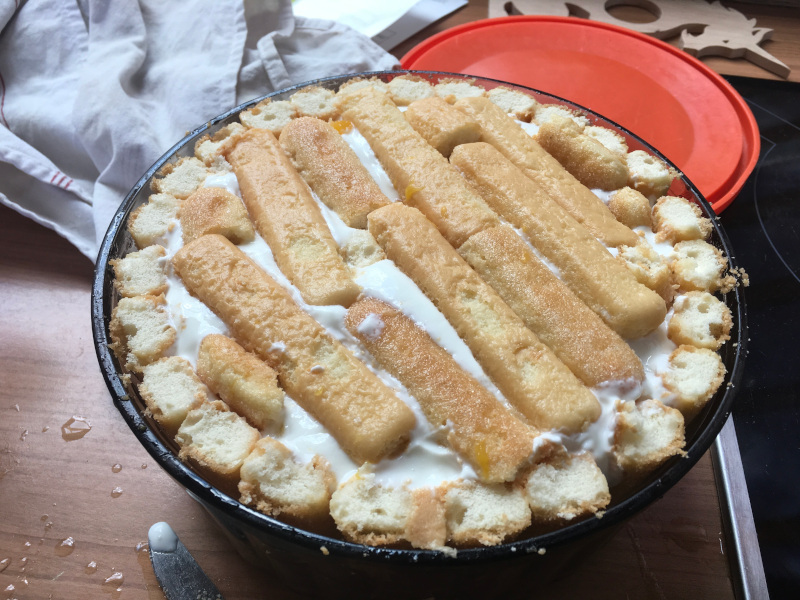 Mettre des boudoirs sur le tour et le fond du plat